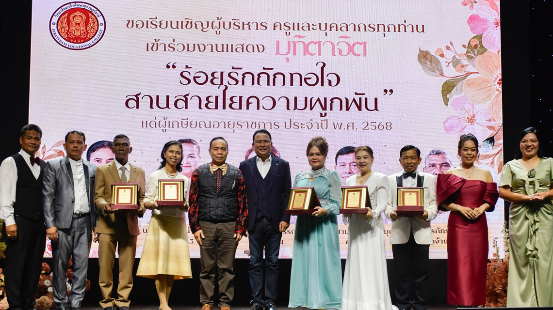 วันเสาร์ที่ 27 กันยายน 2568 นายพงษ์ศักดิ์ นุ้ยเจริญ ผู้อำนวยการวิทยาลัยอาชีวศึกษาสุราษฎร์ธานี เป็นประธานในกิจกรรมมุทิตาจิต “ร้อยรักถักทอใจ สานสายใจมุทิตา”