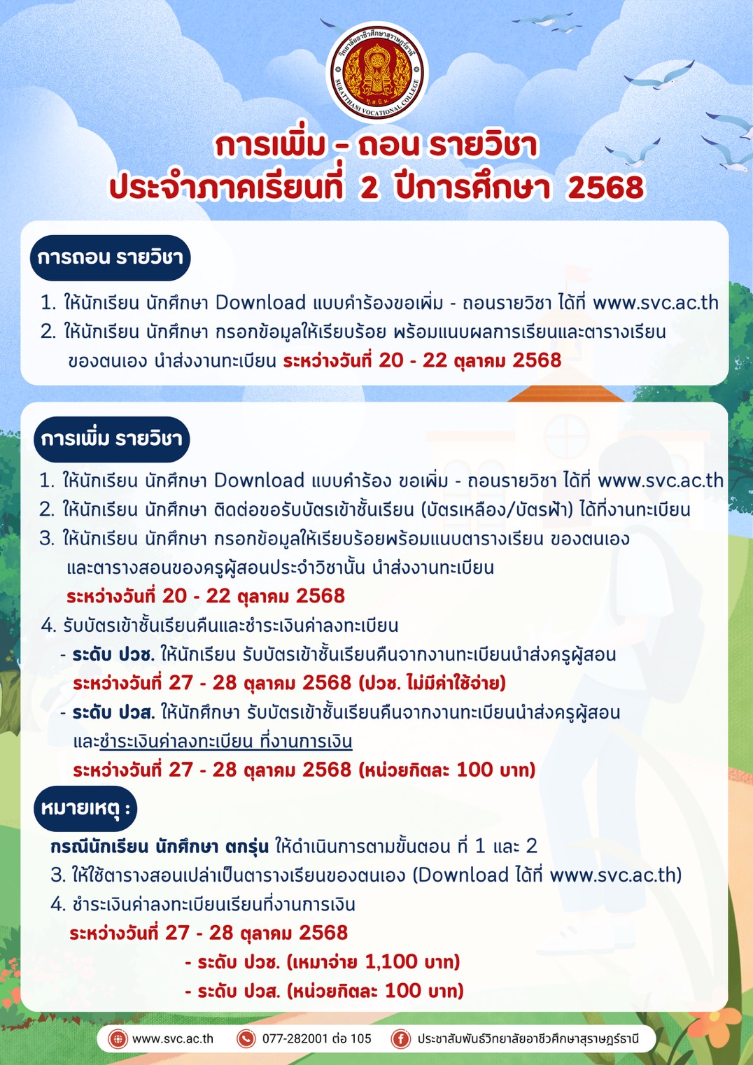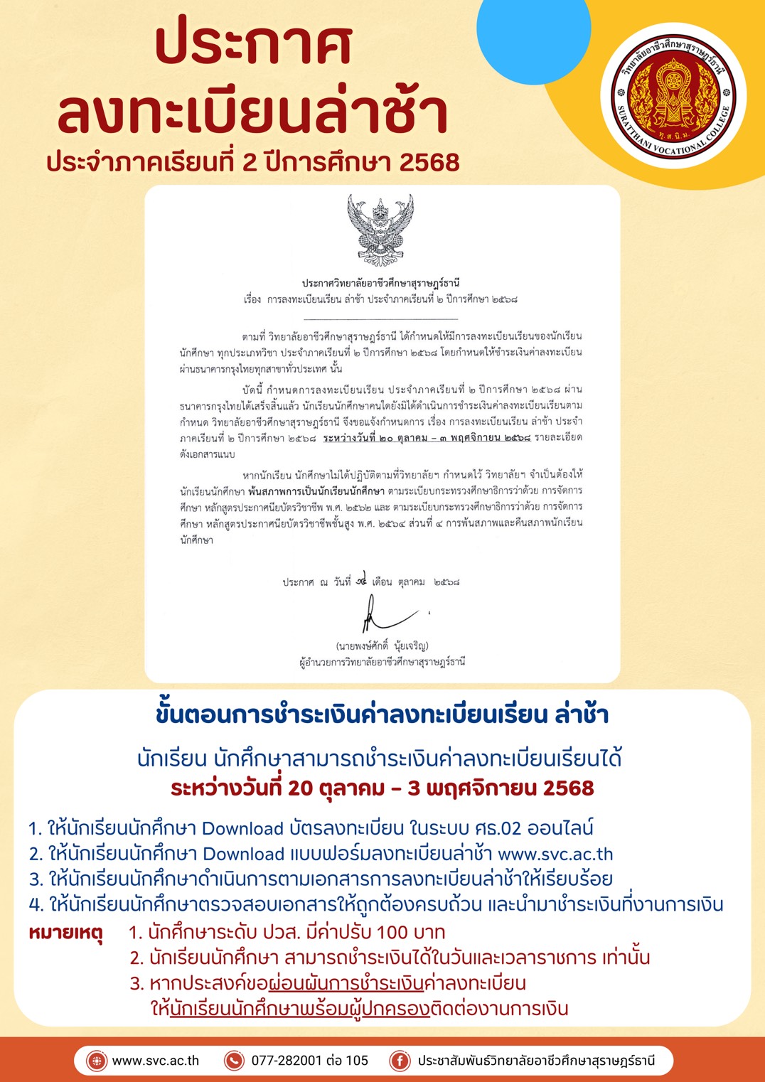 ประกาศ!!! การลงทะเบียนล่าช้า และ การเพิ่ม-ถอน รายวิชา 2/68