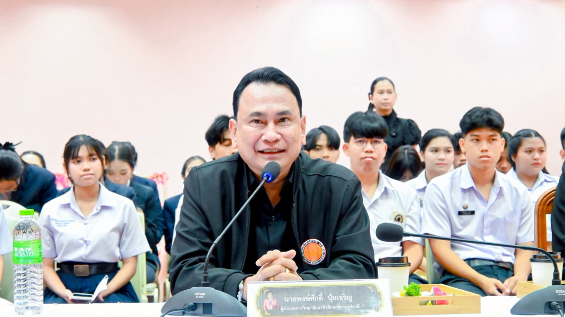 นายพงษ์ศักดิ์ นุ้ยเจริญ ร่วมต้อนรับคณะกรรมการการประเมินองค์การมาตรฐานดีเด่นและการประเมินสมาชิกดีเด่นโครงการภายใต้การนิเทศองค์การนักวิชาชีพในอนาคตแห่งประเทศไทย ประจำปีการศึกษา 2568